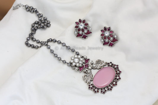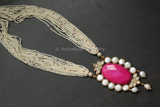 Kundan Baroque Pearls & Semiprecious Stone Necklace Set - Pink