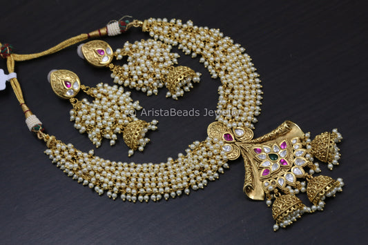 Kundan Baroque Pearls & Semiprecious Stone Lakshmi Necklace Set