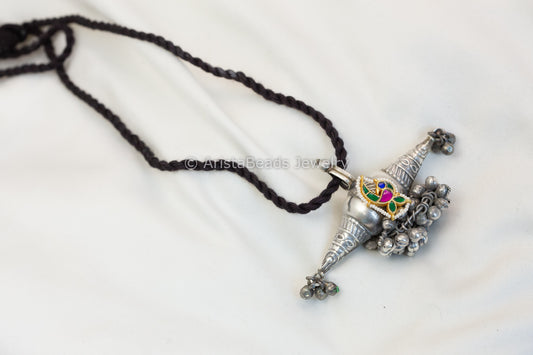 Kundan Fusion Ghungroo Pendant Chain Necklace - Ruby Green