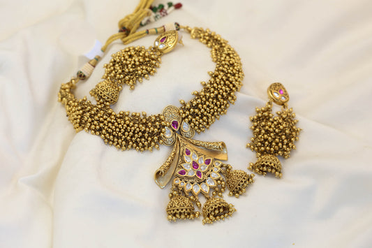 Kundan Gajra Style Guttapusalu Necklace Set (103-69)