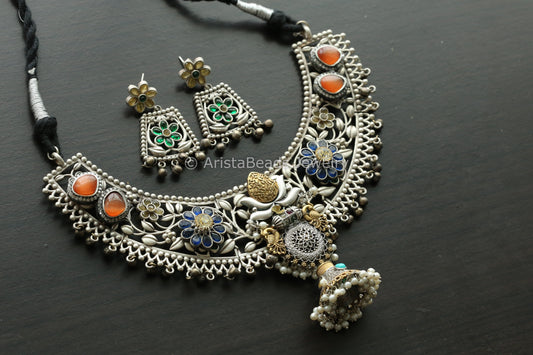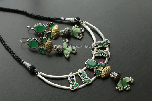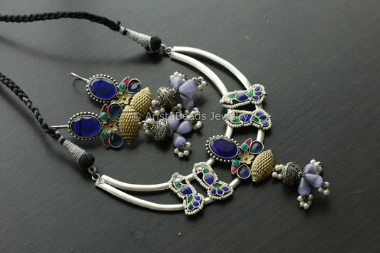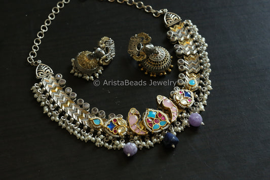 Kundan Fusion Necklace Set - Turquoise Style 2