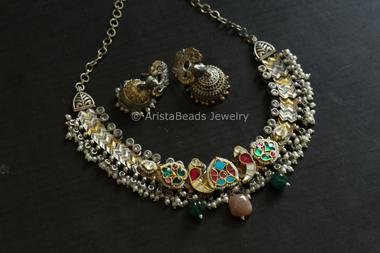 Kundan Fusion Necklace - Style 5(Removable Hasli)