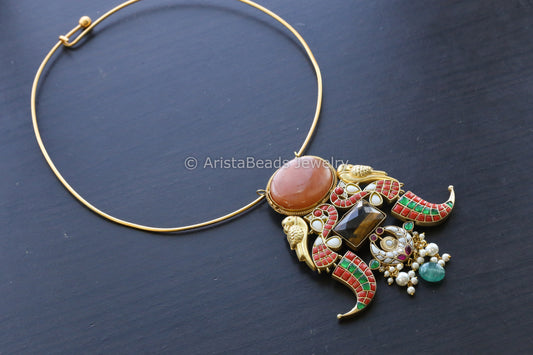 Kundan Jadau Fusion Hasli Necklace - Tiger Eye