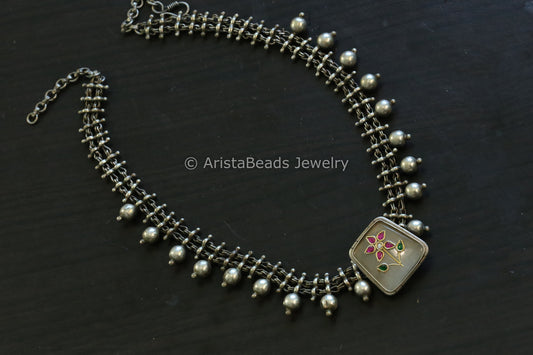 Kundan Inlay Silver Look Alike Fusion Necklace (T102-37)