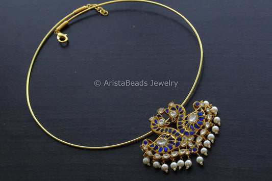 Kundan Jadau Blue Peacock Hasli Necklace (Removable)