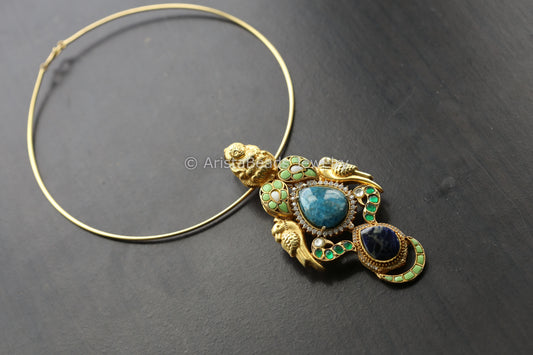 Kundan Jadau Hasli Necklace (Removable) - Blue Chalcedony