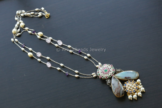 Kundan Jadau Fusion Necklace Set - Labradorite