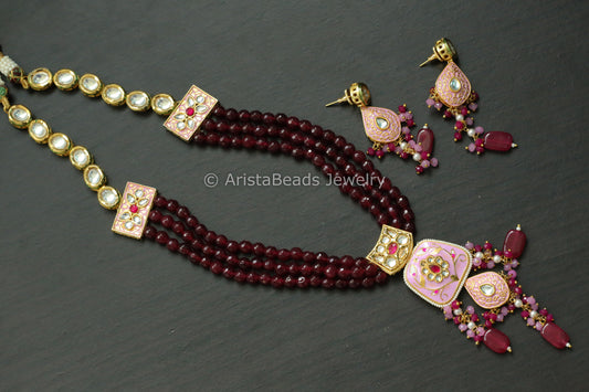 Kundan Meenakari Necklace Set -Pink Red