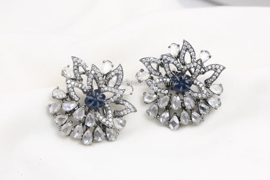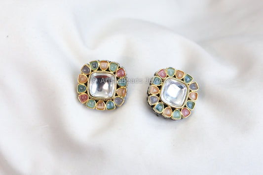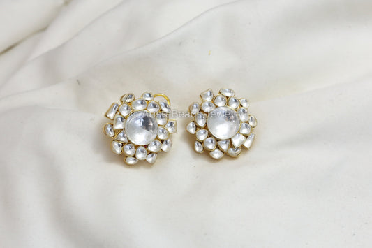 Large 925 Sterling Silver Dual Tone Polki Studs