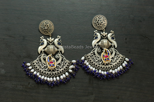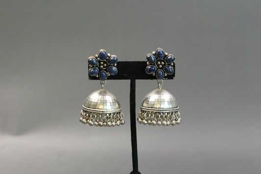 Large 925 Silver Nakshi Kundan Jhumka With Real Pearls