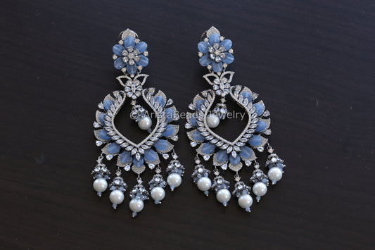 Large Contemporary CZ Silver Finish Earrings - Blue