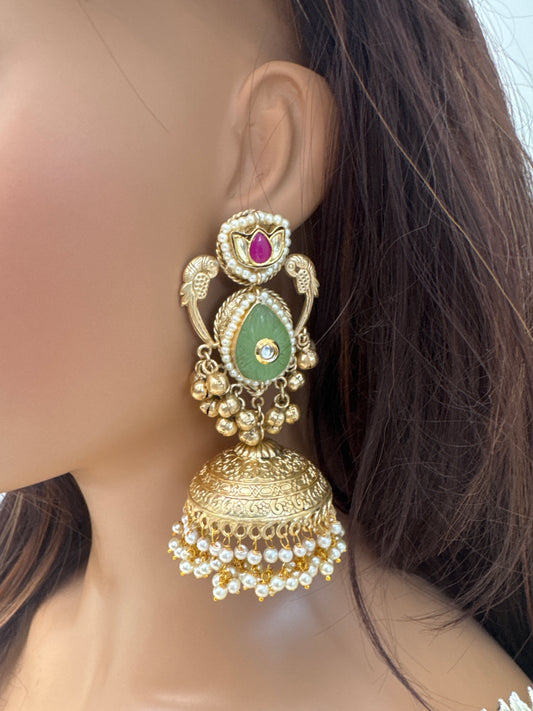 Sold outLarge Dual Tone Jhumka - Green Ruby