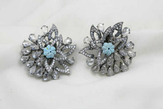 Large CZ Polki Victorian Studs - Turquoise