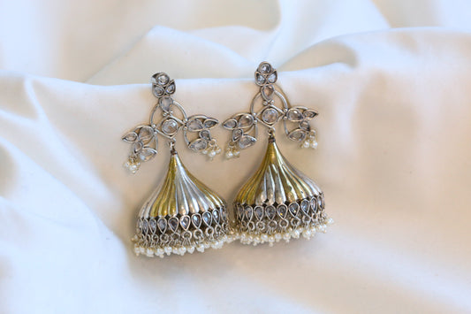 Sold outLarge Dual Tone Jhumka -Clear