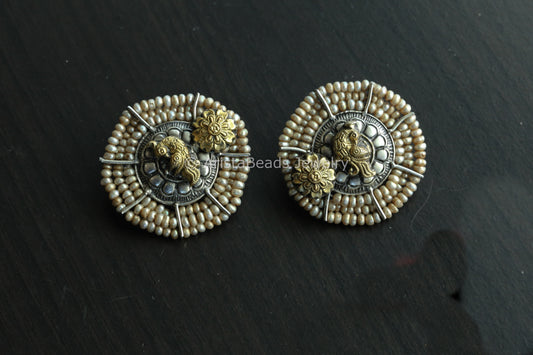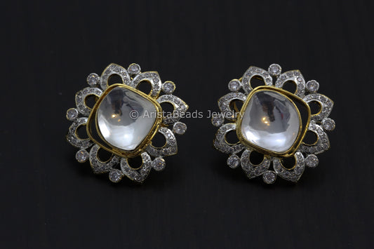 Large Dual Tone 925 Sterling Silver Polki Studs