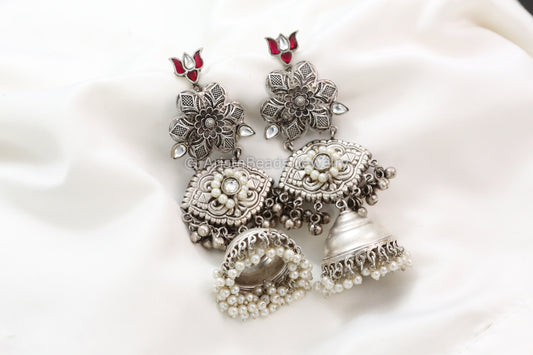 Long 925 Silver Polish Lotus Kundan JhumkaRegular price $ 40.00 USDRegular priceUnit price per$ 0.00 USDSale price $ 40.00 USDSold out