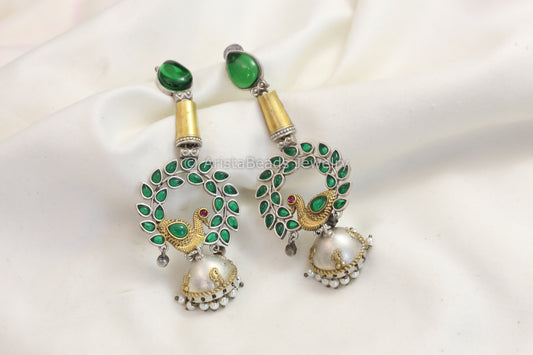 Long Dual Tone Kemp Stone Jhumka - GreenRegular price $ 16.00 USDRegular priceUnit price per-