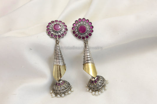 Long Dual Tone Kemp Stone Jhumka - RubyRegular price $ 16.00 USDRegular priceUnit price per-