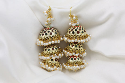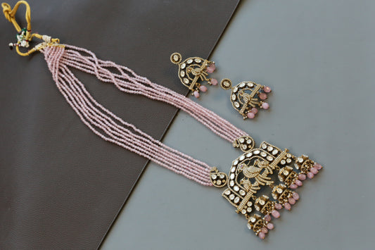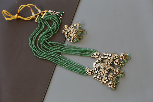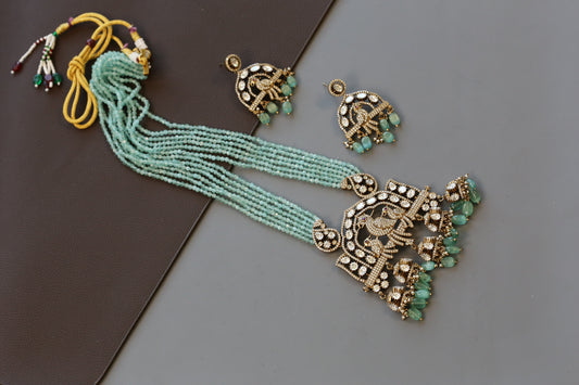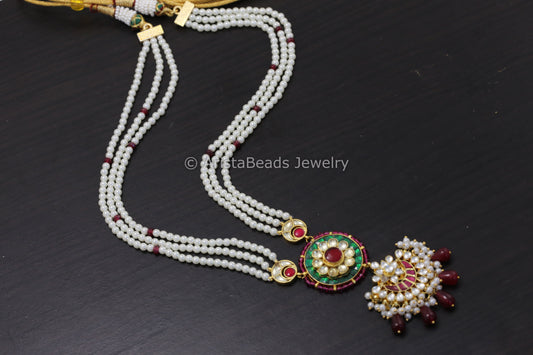 Long Pearl Mala & Pachi Kundan Necklace - Mint Drops