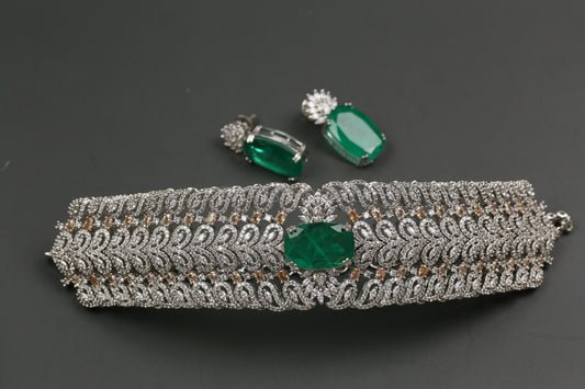 Mahira Premium CZ Doublet Necklace Set - Green Blue