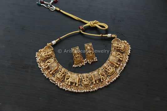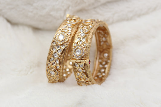 Matt Antique Gold Polki Bangle Set - Clear (2.2 & 2.4 Openable)