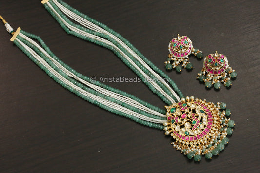 Royal Fine Pachi Kundan Long Necklace Set - Aventurine