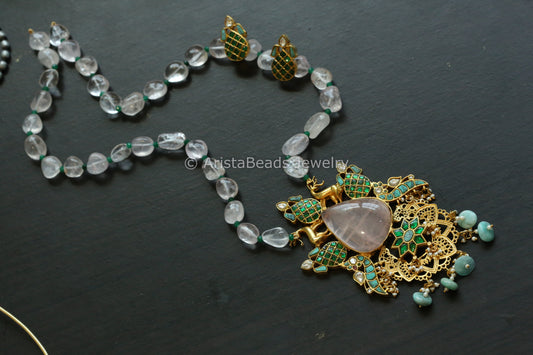 Rose Quartz Stone Fusion Jadau Necklace Set