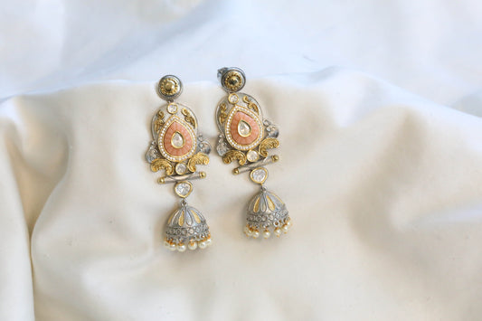 Rubab Dual Tone Carved Stone Jhumka -Coral (101-46)