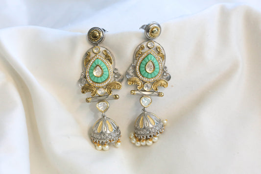 Rubab Dual Tone Carved Stone Jhumka - Blue (101-45)