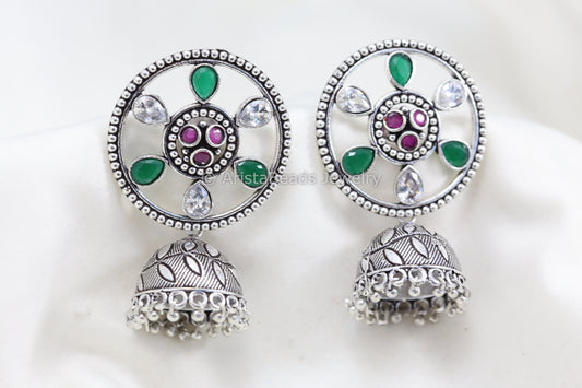Roshini Dual Tone Carved Stone Jhumka -Blue (101-47)