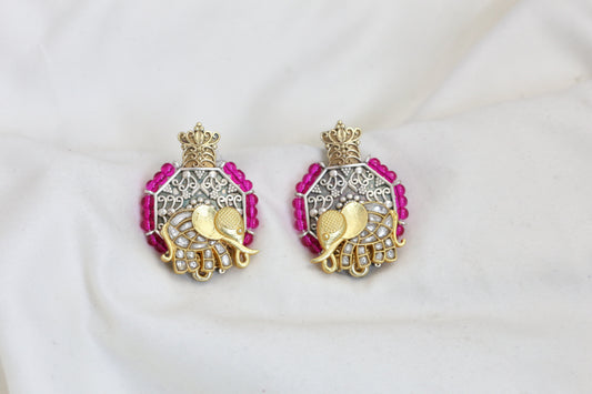 Samaira Enamel Big Polki Kundan Earrings - Red