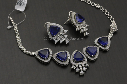 Sapphire Blue Trilliant Cut Doublet Necklace Set