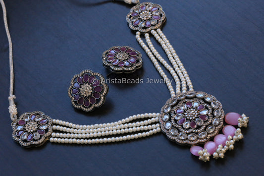 Shri Krishna Kundan Polki Necklace Set - Ruby