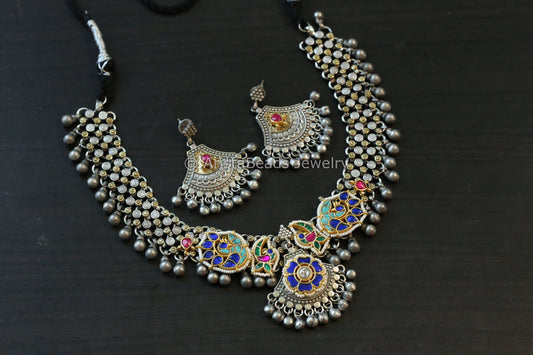 Silver Look Alike Fusion Kundan Necklace (ABJ-N101-44)