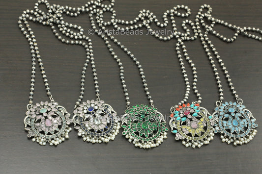 Silver Look ALike Pendant Chain Necklace ( Colors Available)