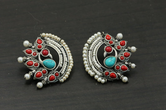 Silver Look Alike Studs - Turquoise Coral