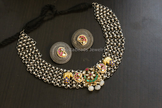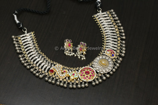Silver Look Jadau Fusion Necklace Set - Stye 2