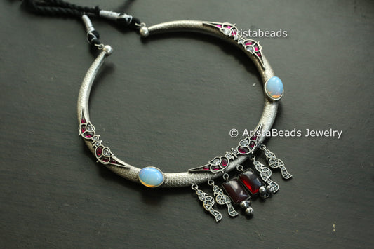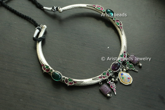 Silver Look Jadau Fusion Hasli Necklace