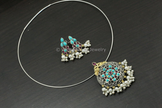 Silver Look Hasli Set - Turquoise Ruby
