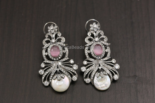 Victorian Baroque Pearl Earrings - Sapphire Blue