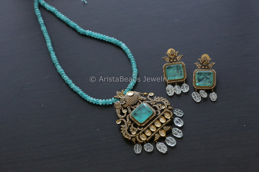 Victorian Uncut Kundan Necklace Set - Green