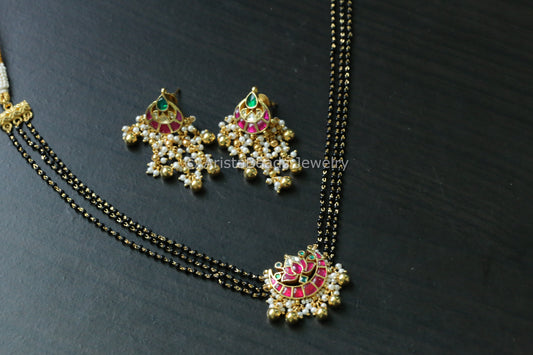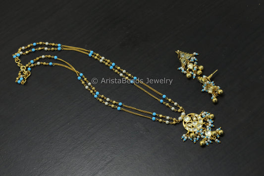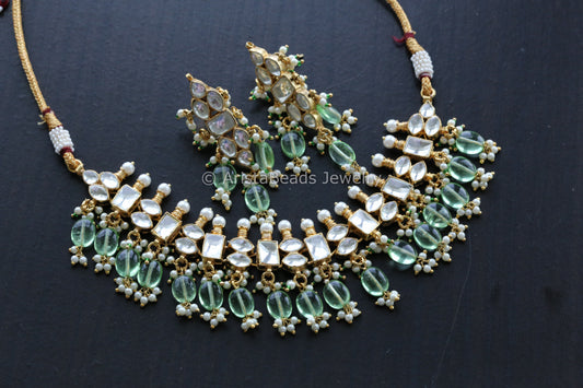 Dainty Pachi Kundan & Ruby Jade Mala Necklace Set