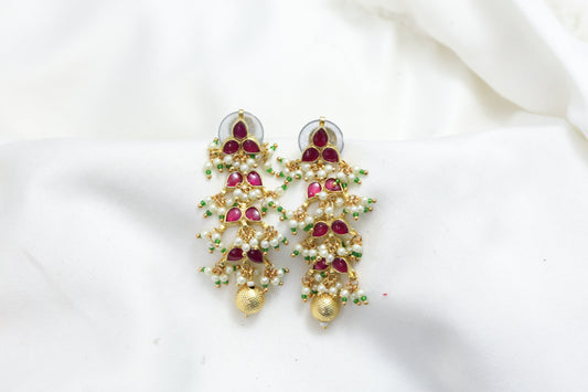 Dainty Pachi Kundan Earrings -Rhodolite Drops