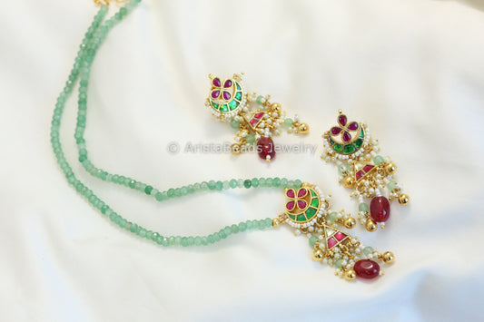 Dainty Pachi Kundan Green Onyx Necklace Set