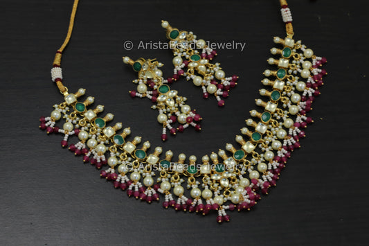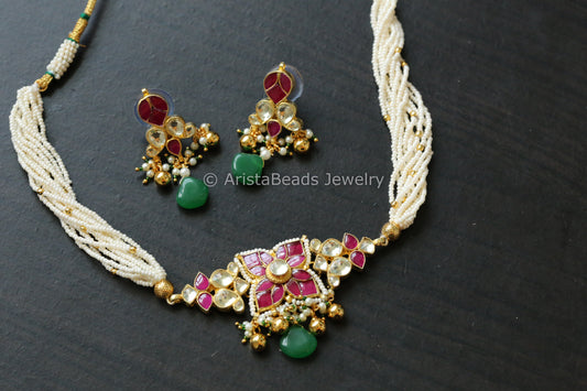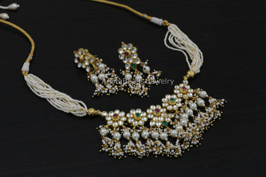 Dainty Pachi Kundan Choker Set In Seed Pearls