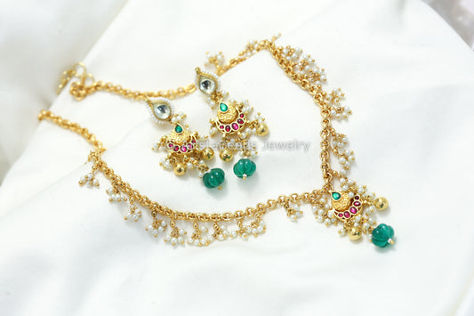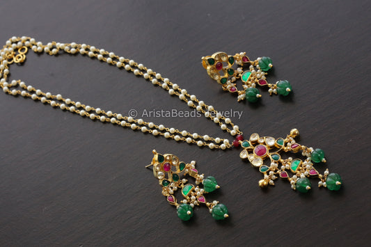 Dainty Pachi Kundan Pendant Set With Melon Drops