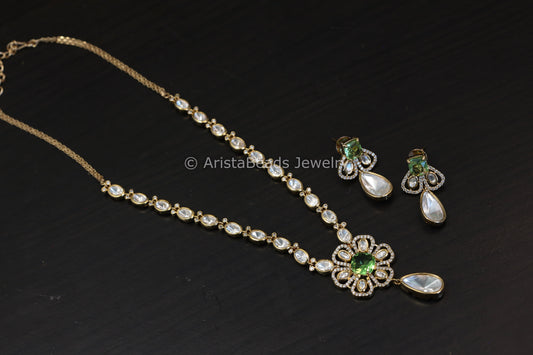 Dainty Uncut Polki Kundan & CZ Necklace Set