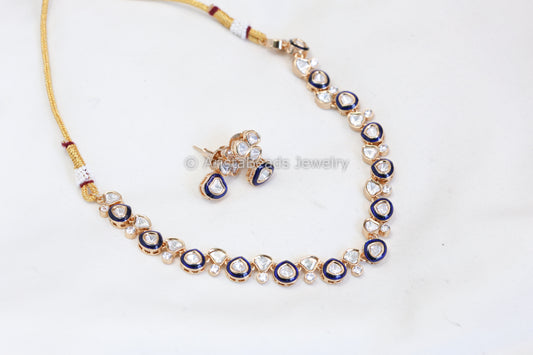 Dainty Uncut Polki & Enamel Necklace Set