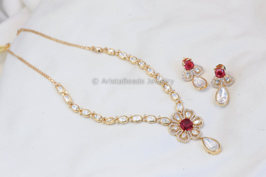 Dainty Uncut Polki Pendant Set - Ruby