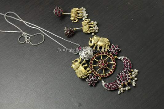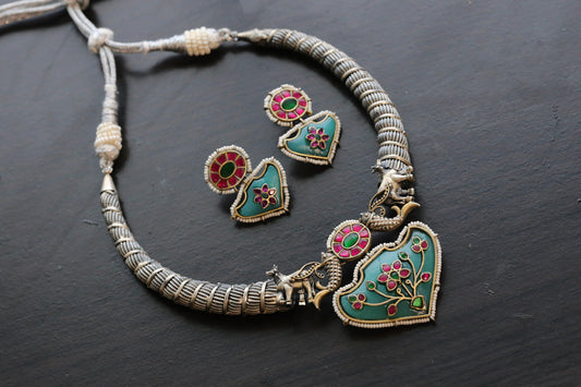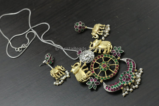 Dual Tone Silver Look Alike Necklace With Kundan Work